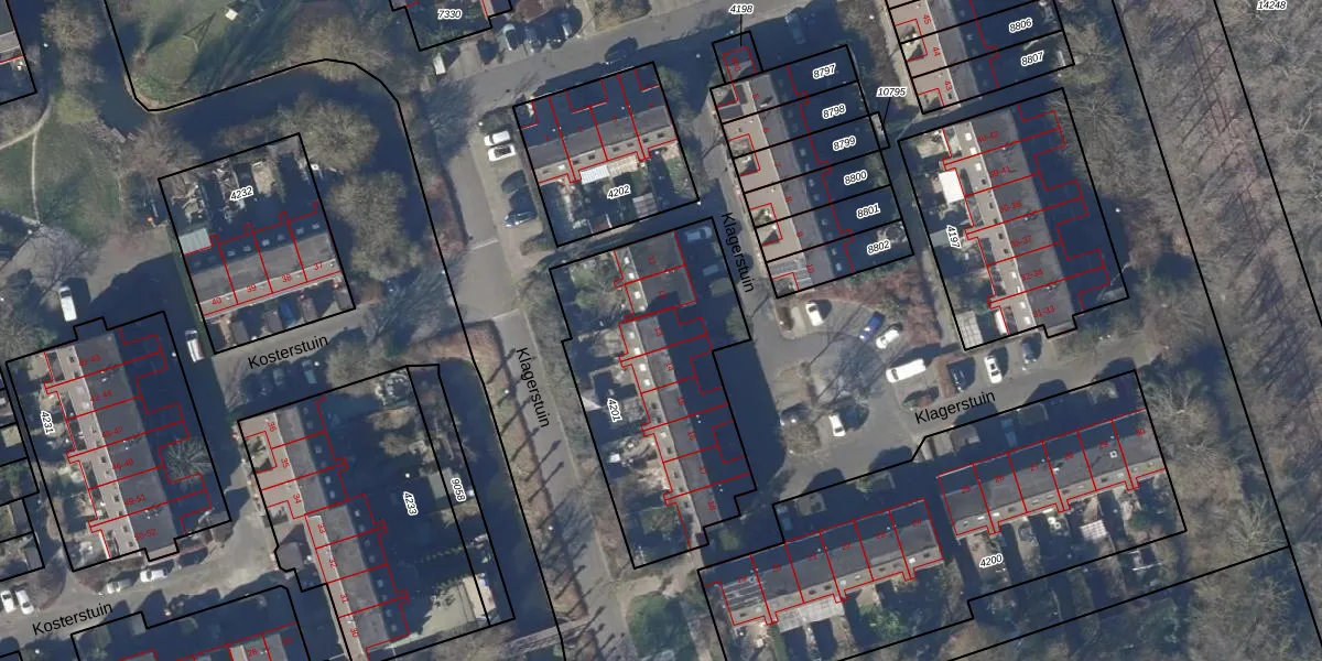 Het perceel waarop Klagerstuin 13 staat heeft een oppervlakte van 1059 m². Dit is een zeer groot perceel. De perceeloppervlakte wordt geregistreerd door het Kadaster. Gedetailleerde informatie over de maten van dit perceel kunt u vinden in het rapport Kadastrale kaart met maatvoering van Klagerstuin 13.