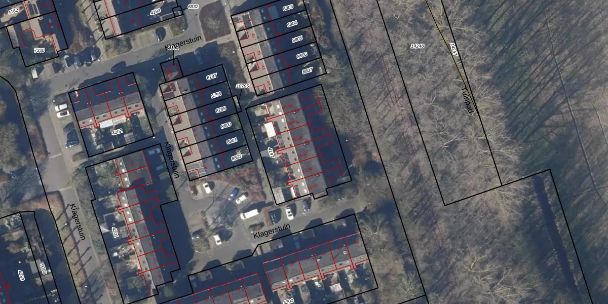 Het perceel waarop Klagerstuin 37 staat heeft een oppervlakte van 872 m². Dit is een groot perceel. De perceeloppervlakte wordt geregistreerd door het Kadaster. Gedetailleerde informatie over de maten van dit perceel kunt u vinden in het rapport Kadastrale kaart met maatvoering van Klagerstuin 37.