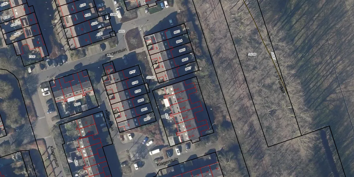Het perceel waarop Klagerstuin 42 staat heeft een oppervlakte van 872 m². Dit is een groot perceel. De perceeloppervlakte wordt geregistreerd door het Kadaster. Gedetailleerde informatie over de maten van dit perceel kunt u vinden in het rapport Kadastrale kaart met maatvoering van Klagerstuin 42.