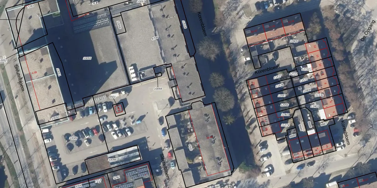 Het perceel waarop Korenbloem 62 staat heeft een oppervlakte van 1480 m². Dit is een zeer groot perceel. De perceeloppervlakte wordt geregistreerd door het Kadaster. Gedetailleerde informatie over de maten van dit perceel kunt u vinden in het rapport Kadastrale kaart met maatvoering van Korenbloem 62.