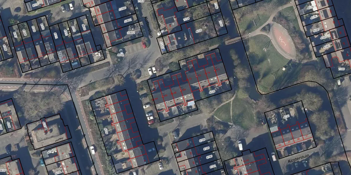 Het perceel waarop Kosterstuin 66 staat heeft een oppervlakte van 1116 m². Dit is een zeer groot perceel. De perceeloppervlakte wordt geregistreerd door het Kadaster. Gedetailleerde informatie over de maten van dit perceel kunt u vinden in het rapport Kadastrale kaart met maatvoering van Kosterstuin 66.