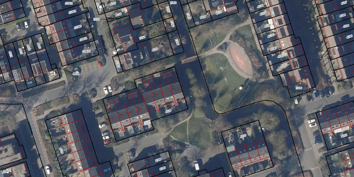 Het perceel waarop Kosterstuin 77 staat heeft een oppervlakte van 1116 m². Dit is een zeer groot perceel. De perceeloppervlakte wordt geregistreerd door het Kadaster. Gedetailleerde informatie over de maten van dit perceel kunt u vinden in het rapport Kadastrale kaart met maatvoering van Kosterstuin 77.