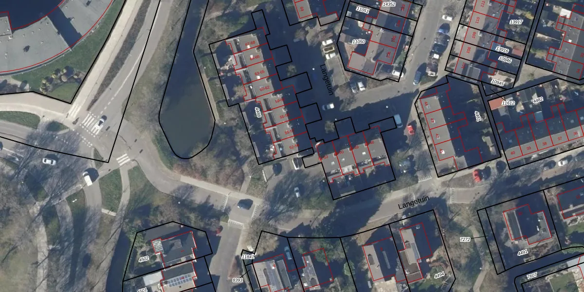 Het perceel waarop Langetuin 54 staat heeft een oppervlakte van 1539 m². Dit is een zeer groot perceel. De perceeloppervlakte wordt geregistreerd door het Kadaster. Gedetailleerde informatie over de maten van dit perceel kunt u vinden in het rapport Kadastrale kaart met maatvoering van Langetuin 54.