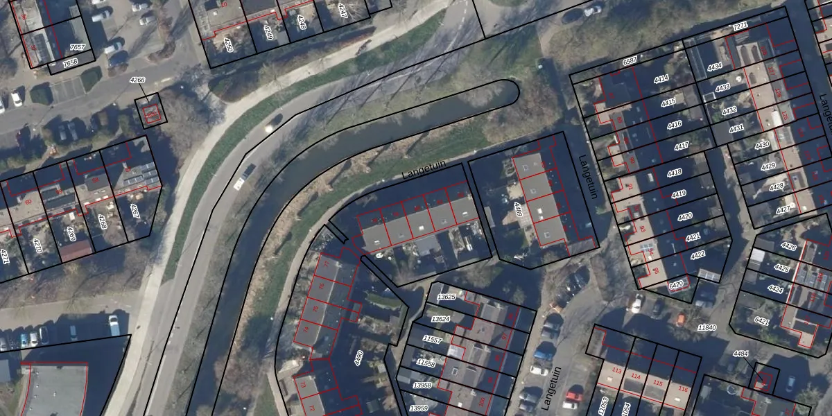 Het perceel waarop Langetuin 80 staat heeft een oppervlakte van 2142 m². Dit is een zeer groot perceel. De perceeloppervlakte wordt geregistreerd door het Kadaster. Gedetailleerde informatie over de maten van dit perceel kunt u vinden in het rapport Kadastrale kaart met maatvoering van Langetuin 80.