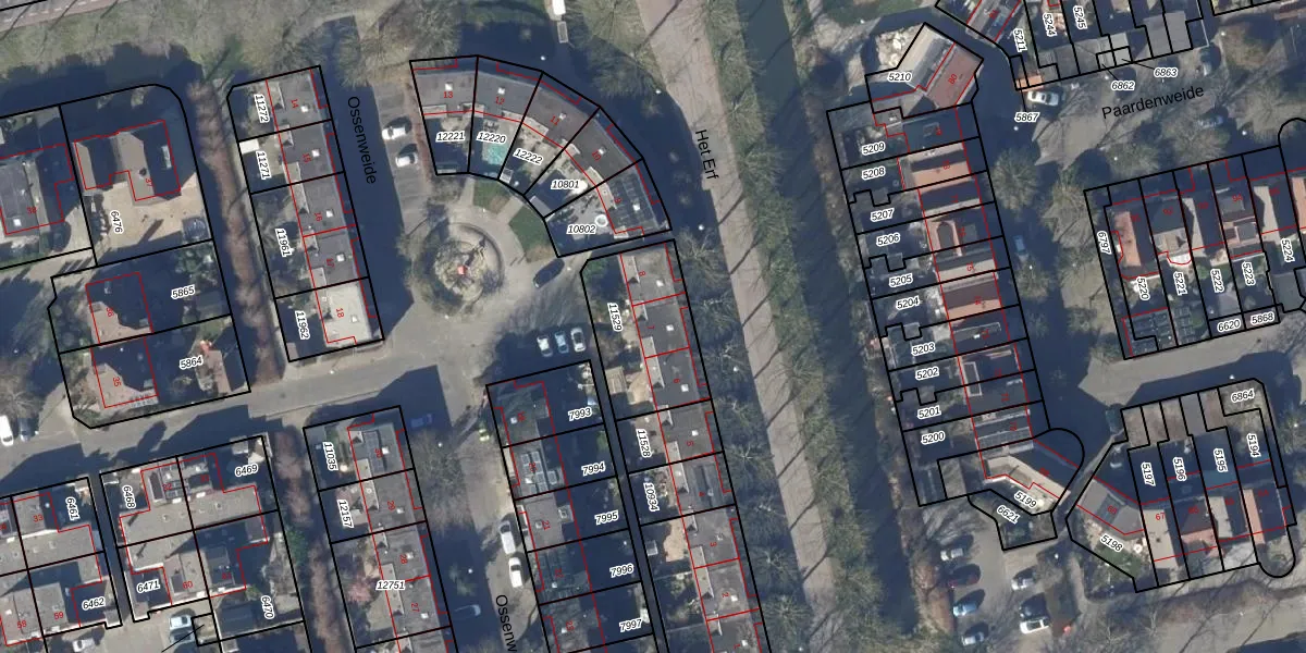 Het perceel waarop Ossenweide 7 staat heeft een oppervlakte van 372 m². Dit is een groot perceel. De perceeloppervlakte wordt geregistreerd door het Kadaster. Gedetailleerde informatie over de maten van dit perceel kunt u vinden in het rapport Kadastrale kaart met maatvoering van Ossenweide 7.