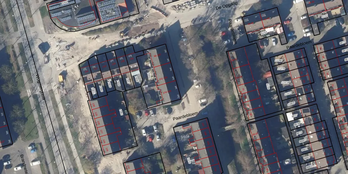 Het perceel waarop Paardebloem 104 staat heeft een oppervlakte van 619 m². Dit is een groot perceel. De perceeloppervlakte wordt geregistreerd door het Kadaster. Gedetailleerde informatie over de maten van dit perceel kunt u vinden in het rapport Kadastrale kaart met maatvoering van Paardebloem 104.