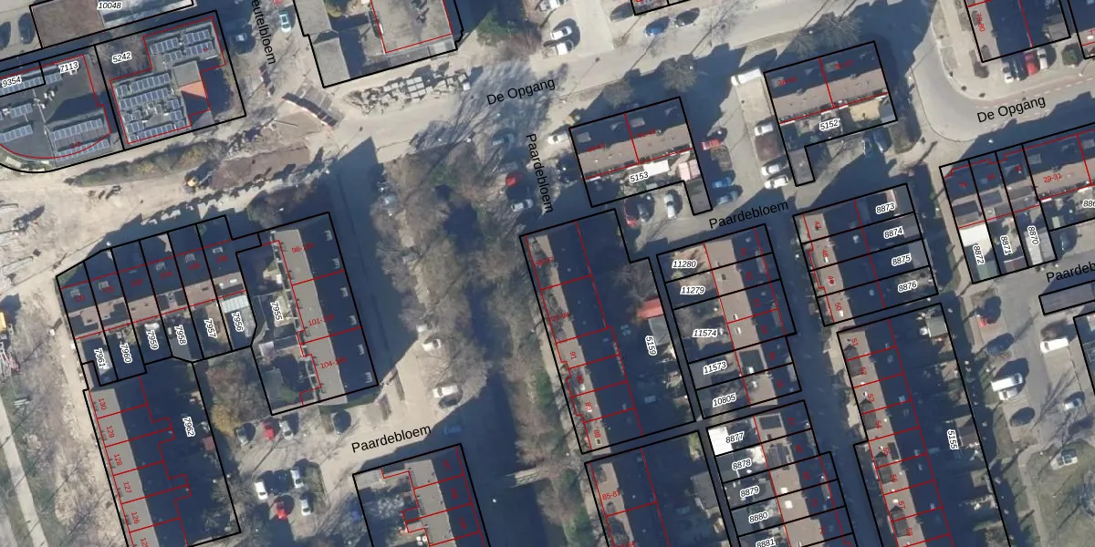 Het perceel waarop Paardebloem 95 staat heeft een oppervlakte van 856 m². Dit is een groot perceel. De perceeloppervlakte wordt geregistreerd door het Kadaster. Gedetailleerde informatie over de maten van dit perceel kunt u vinden in het rapport Kadastrale kaart met maatvoering van Paardebloem 95.