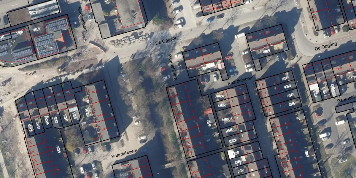 Het perceel waarop Paardebloem 97 staat heeft een oppervlakte van 856 m². Dit is een groot perceel. De perceeloppervlakte wordt geregistreerd door het Kadaster. Gedetailleerde informatie over de maten van dit perceel kunt u vinden in het rapport Kadastrale kaart met maatvoering van Paardebloem 97.