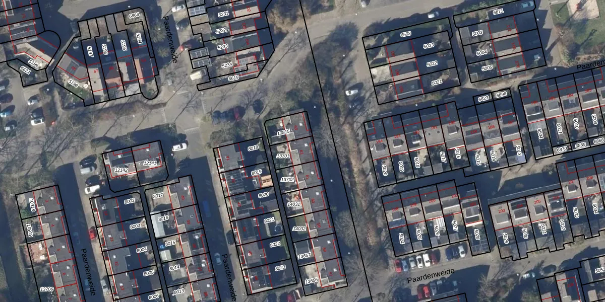 Het perceel waarop Paardenweide 62 staat heeft een oppervlakte van 123 m². Dit is een middelgroot perceel. De perceeloppervlakte wordt geregistreerd door het Kadaster. Gedetailleerde informatie over de maten van dit perceel kunt u vinden in het rapport Kadastrale kaart met maatvoering van Paardenweide 62.