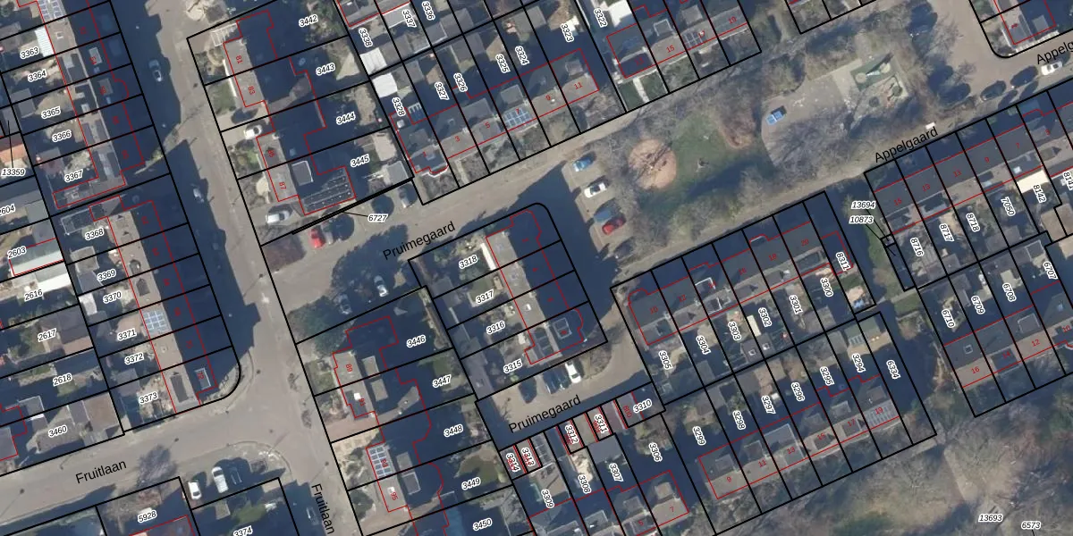 Gebruik de zoekbalk of klik op een perceel voor informatie over de adressen binnen dit perceel.