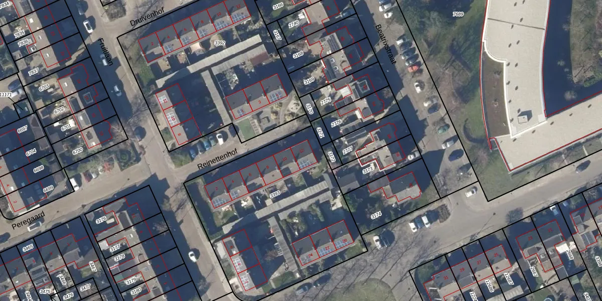 Het perceel waarop Reinettenhof 12 staat heeft een oppervlakte van 2127 m². Dit is een zeer groot perceel. De perceeloppervlakte wordt geregistreerd door het Kadaster. Gedetailleerde informatie over de maten van dit perceel kunt u vinden in het rapport Kadastrale kaart met maatvoering van Reinettenhof 12.