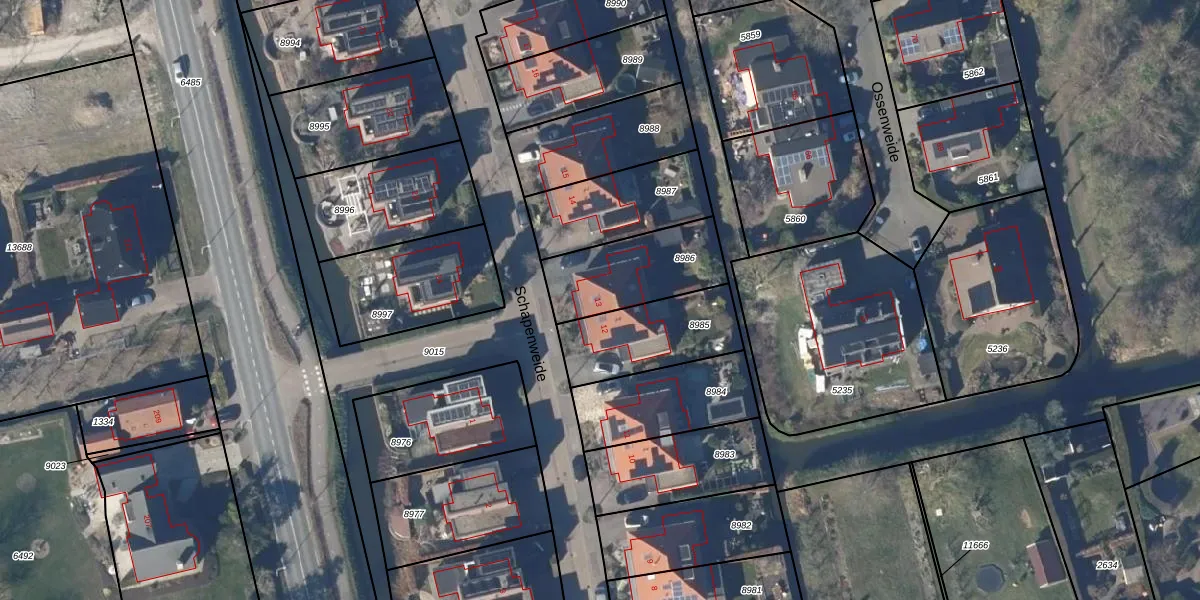 Het perceel waarop Schapenweide 13 staat heeft een oppervlakte van 335 m². Dit is een groot perceel. De perceeloppervlakte wordt geregistreerd door het Kadaster. Gedetailleerde informatie over de maten van dit perceel kunt u vinden in het rapport Kadastrale kaart met maatvoering van Schapenweide 13.