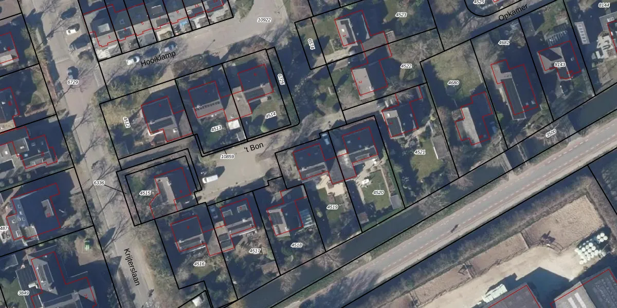 Het perceel waarop 't Bon 5 staat heeft een oppervlakte van 525 m². Dit is een groot perceel. De perceeloppervlakte wordt geregistreerd door het Kadaster. Gedetailleerde informatie over de maten van dit perceel kunt u vinden in het rapport Kadastrale kaart met maatvoering van 't Bon 5.