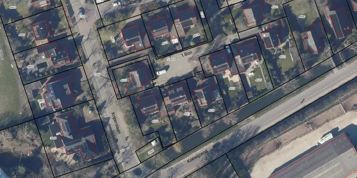 Gebruik de zoekbalk of klik op een perceel voor informatie over de adressen binnen dit perceel.