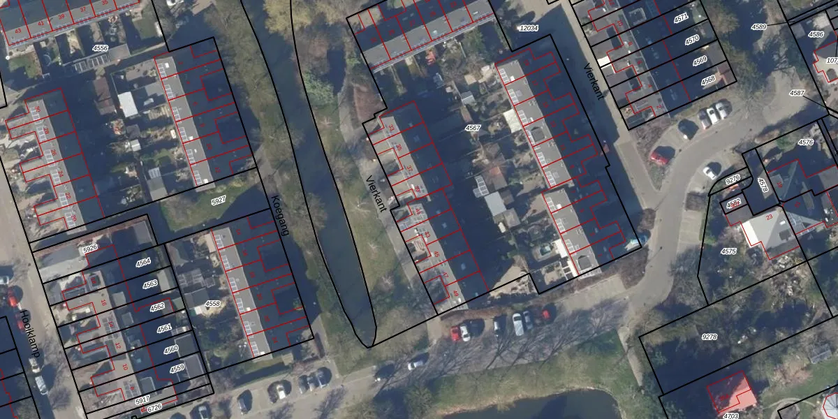 Het perceel waarop Vierkant 41 staat heeft een oppervlakte van 3445 m². Dit is een zeer groot perceel. De perceeloppervlakte wordt geregistreerd door het Kadaster. Gedetailleerde informatie over de maten van dit perceel kunt u vinden in het rapport Kadastrale kaart met maatvoering van Vierkant 41.