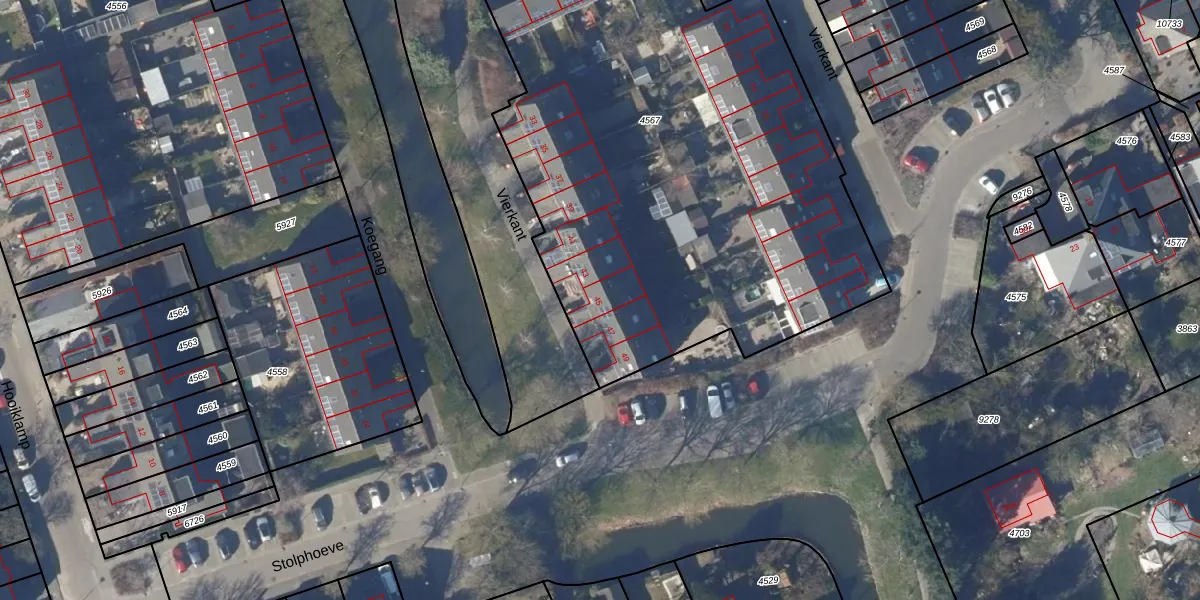 Vierkant 45 is gelegen op kadastraal perceel HOO00I4567. Deze kadastrale aanduiding is uniek en wordt gebruikt door het Kadaster om eigendomsrechten en andere zakelijke rechten vast te leggen. Het perceel maakt onderdeel uit van de kadastrale gemeente Hoorn.
