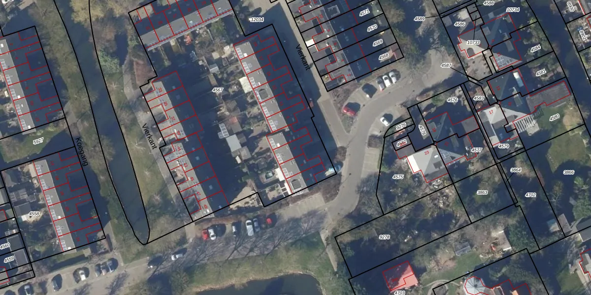 Het perceel waarop Vierkant 5 staat heeft een oppervlakte van 3445 m². Dit is een zeer groot perceel. De perceeloppervlakte wordt geregistreerd door het Kadaster. Gedetailleerde informatie over de maten van dit perceel kunt u vinden in het rapport Kadastrale kaart met maatvoering van Vierkant 5.