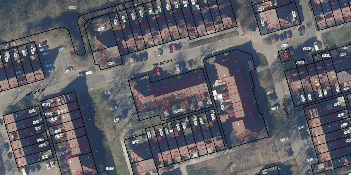 Het perceel waarop Weegbree 110 staat heeft een oppervlakte van 982 m². Dit is een groot perceel. De perceeloppervlakte wordt geregistreerd door het Kadaster. Gedetailleerde informatie over de maten van dit perceel kunt u vinden in het rapport Kadastrale kaart met maatvoering van Weegbree 110.