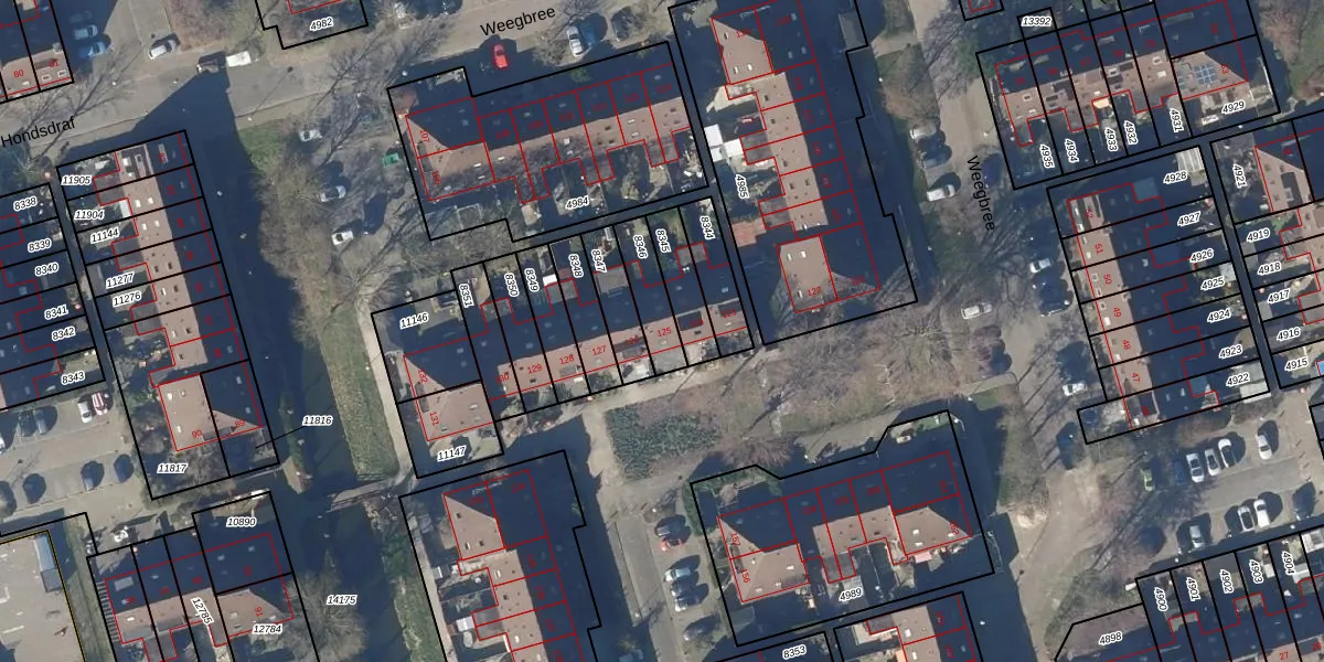 Gebruik de zoekbalk of klik op een perceel voor informatie over de adressen binnen dit perceel.