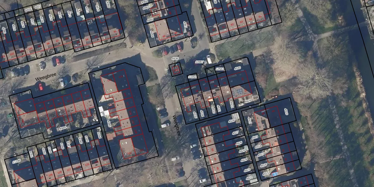 Gebruik de zoekbalk of klik op een perceel voor informatie over de adressen binnen dit perceel.