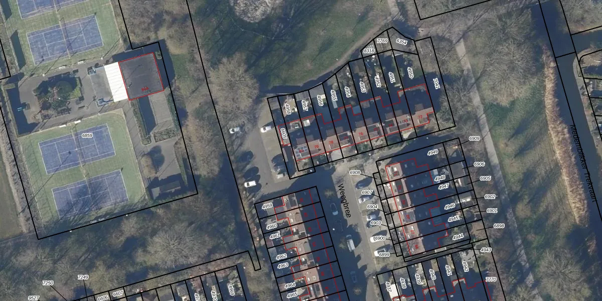 Gebruik de zoekbalk of klik op een perceel voor informatie over de adressen binnen dit perceel.