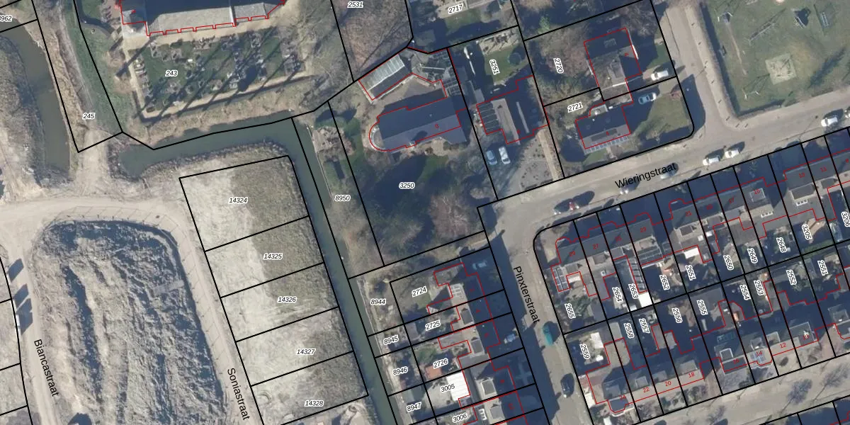 Het perceel waarop Wieringstraat 8-A staat heeft een oppervlakte van 1303 m². Dit is een zeer groot perceel. De perceeloppervlakte wordt geregistreerd door het Kadaster. Gedetailleerde informatie over de maten van dit perceel kunt u vinden in het rapport Kadastrale kaart met maatvoering van Wieringstraat 8-A.