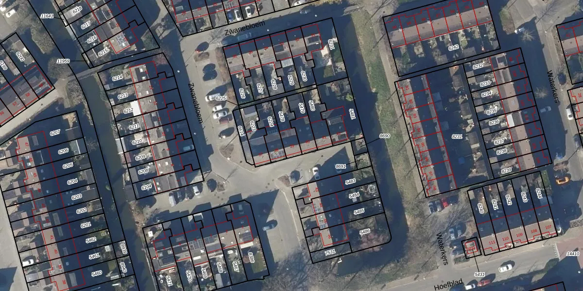 Gebruik de zoekbalk of klik op een perceel voor informatie over de adressen binnen dit perceel.