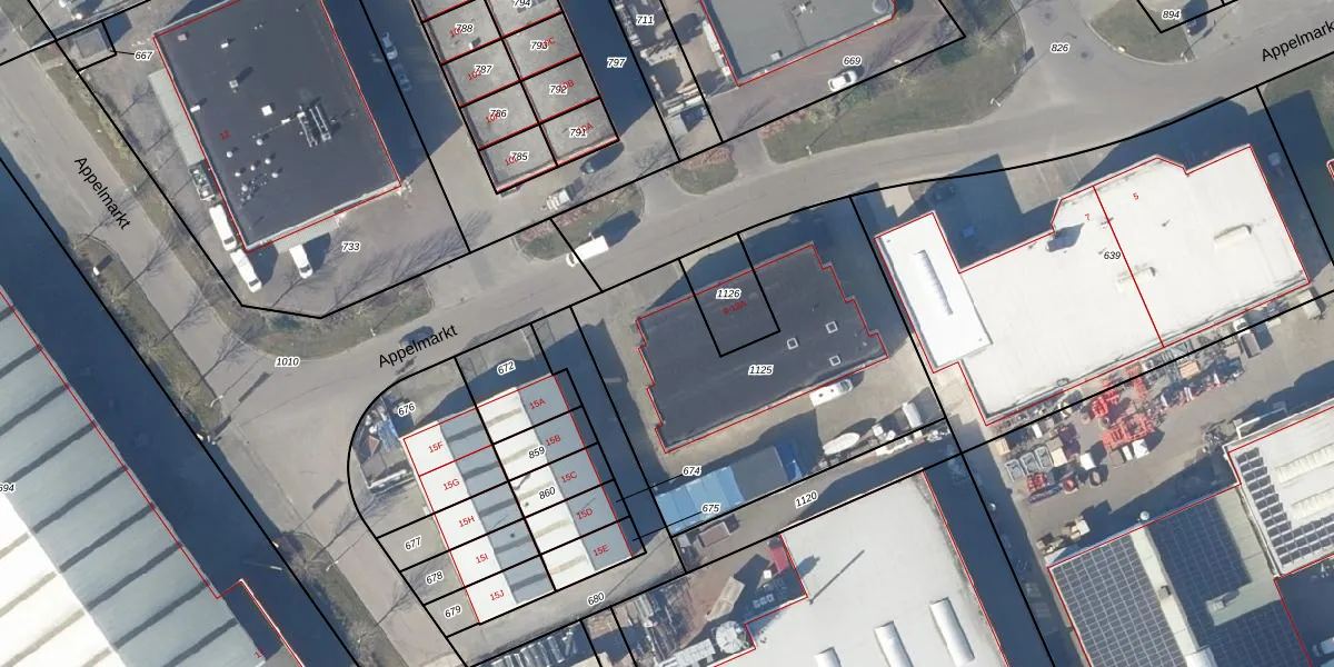 Het perceel waarop Appelmarkt 13 staat heeft een oppervlakte van 1540 m². Dit is een zeer groot perceel. De perceeloppervlakte wordt geregistreerd door het Kadaster. Gedetailleerde informatie over de maten van dit perceel kunt u vinden in het rapport Kadastrale kaart met maatvoering van Appelmarkt 13.