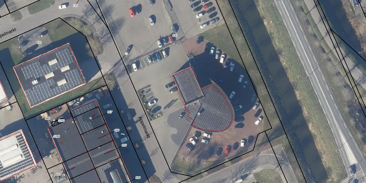 Het perceel waarop Appelmarkt 2 staat heeft een oppervlakte van 6850 m². Dit is een zeer groot perceel. De perceeloppervlakte wordt geregistreerd door het Kadaster. Gedetailleerde informatie over de maten van dit perceel kunt u vinden in het rapport Kadastrale kaart met maatvoering van Appelmarkt 2.