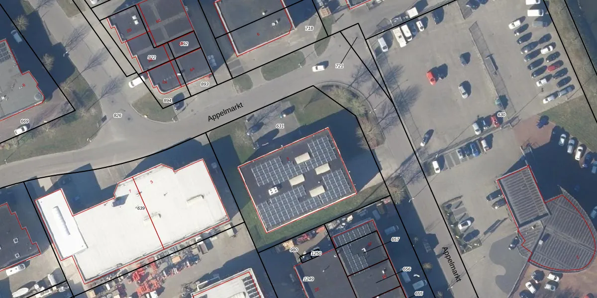 Het perceel waarop Appelmarkt 3 staat heeft een oppervlakte van 2060 m². Dit is een zeer groot perceel. De perceeloppervlakte wordt geregistreerd door het Kadaster. Gedetailleerde informatie over de maten van dit perceel kunt u vinden in het rapport Kadastrale kaart met maatvoering van Appelmarkt 3.