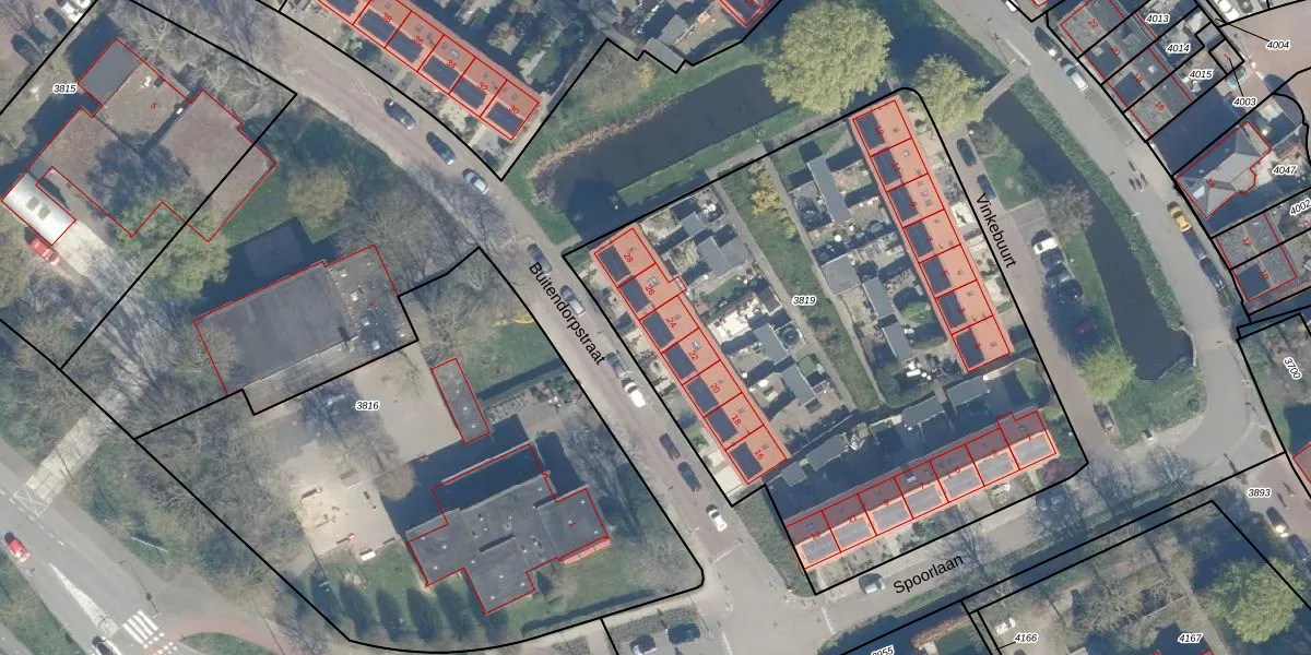 Het perceel waarop Buitendorpstraat 24 staat heeft een oppervlakte van 3415 m². Dit is een zeer groot perceel. De perceeloppervlakte wordt geregistreerd door het Kadaster. Gedetailleerde informatie over de maten van dit perceel kunt u vinden in het rapport Kadastrale kaart met maatvoering van Buitendorpstraat 24.