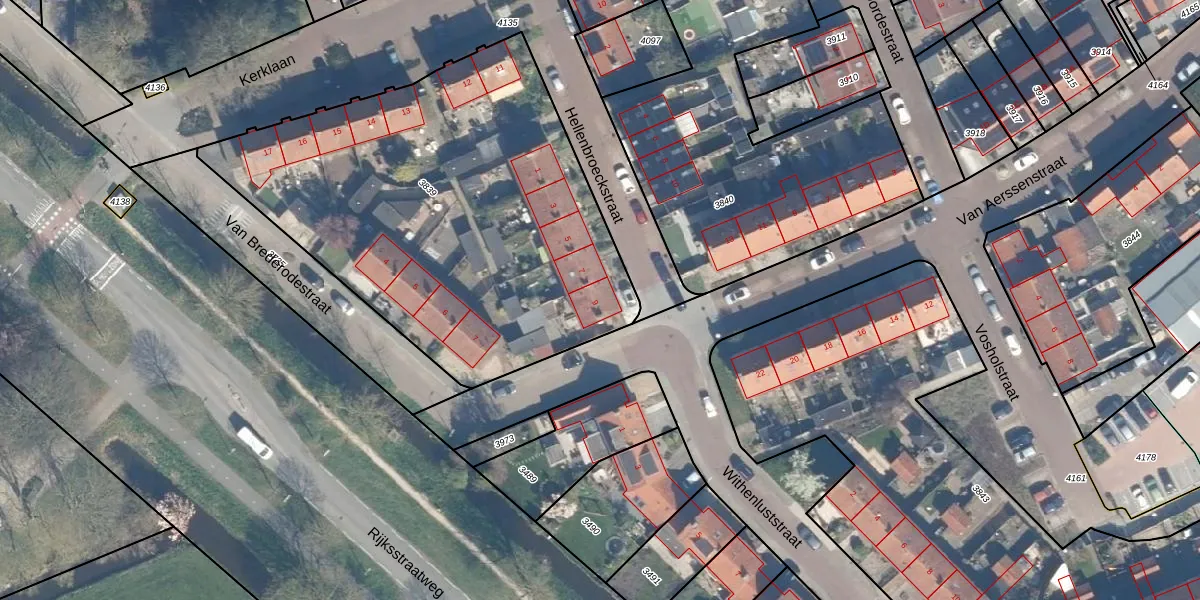 Het perceel waarop Hellenbroeckstraat 9 staat heeft een oppervlakte van 2350 m². Dit is een zeer groot perceel. De perceeloppervlakte wordt geregistreerd door het Kadaster. Gedetailleerde informatie over de maten van dit perceel kunt u vinden in het rapport Kadastrale kaart met maatvoering van Hellenbroeckstraat 9.