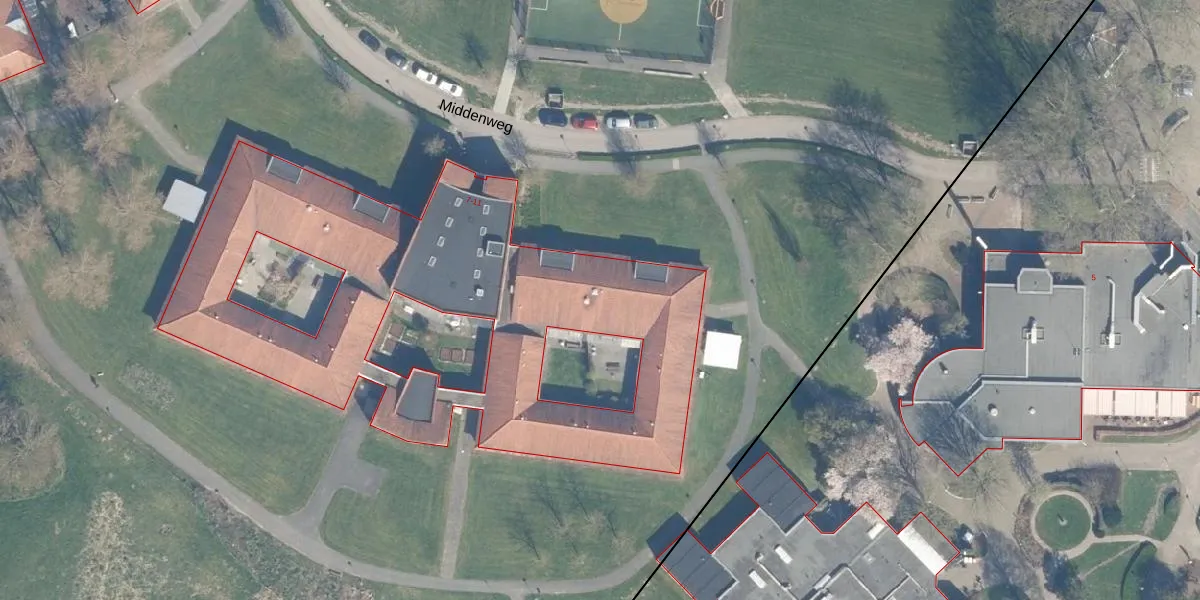 Het perceel waarop Middenweg 7 staat heeft een oppervlakte van 27,5 ha. Dit is een zeer groot perceel. De perceeloppervlakte wordt geregistreerd door het Kadaster. Gedetailleerde informatie over de maten van dit perceel kunt u vinden in het rapport Kadastrale kaart met maatvoering van Middenweg 7.