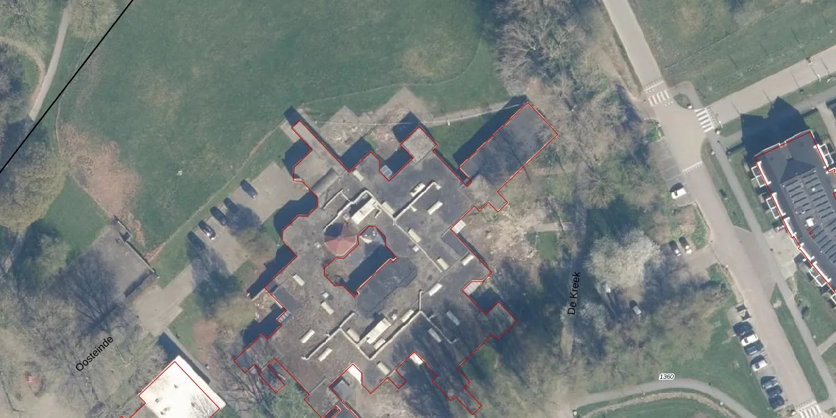 Het perceel waarop Oosteinde 1 staat heeft een oppervlakte van 15,1 ha. Dit is een zeer groot perceel. De perceeloppervlakte wordt geregistreerd door het Kadaster. Gedetailleerde informatie over de maten van dit perceel kunt u vinden in het rapport Kadastrale kaart met maatvoering van Oosteinde 1.