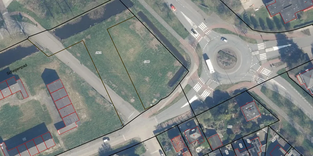 Het perceel waarop Schepenpad 15 staat heeft een oppervlakte van 1546 m². Dit is een zeer groot perceel. De perceeloppervlakte wordt geregistreerd door het Kadaster. Gedetailleerde informatie over de maten van dit perceel kunt u vinden in het rapport Kadastrale kaart met maatvoering van Schepenpad 15.