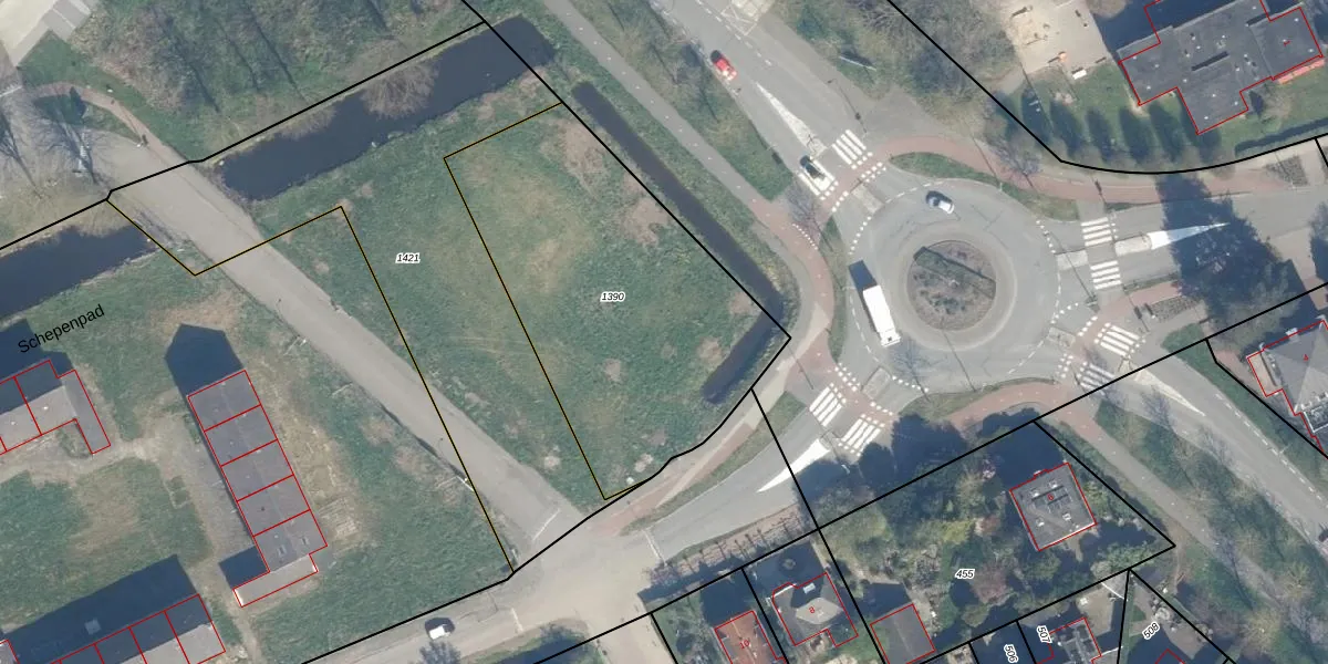 Het perceel waarop Schepenpad 5 staat heeft een oppervlakte van 1546 m². Dit is een zeer groot perceel. De perceeloppervlakte wordt geregistreerd door het Kadaster. Gedetailleerde informatie over de maten van dit perceel kunt u vinden in het rapport Kadastrale kaart met maatvoering van Schepenpad 5.