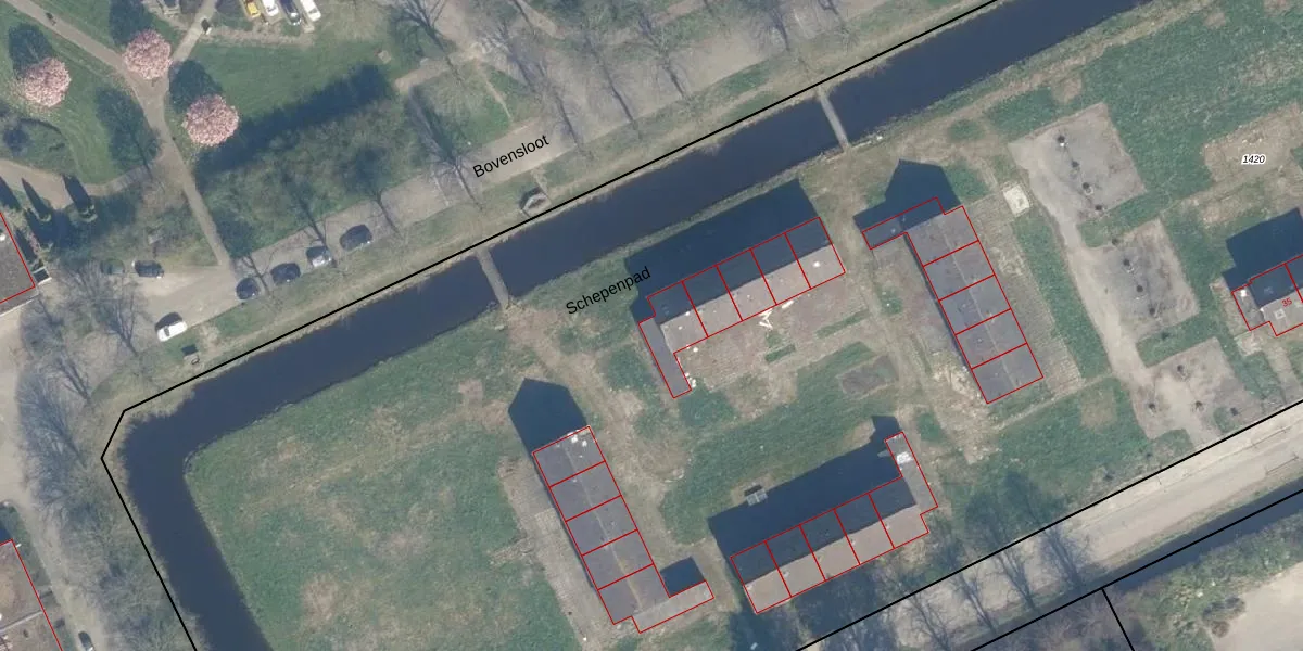 Het perceel waarop Schepenpad 64 staat heeft een oppervlakte van 2,8 ha. Dit is een zeer groot perceel. De perceeloppervlakte wordt geregistreerd door het Kadaster. Gedetailleerde informatie over de maten van dit perceel kunt u vinden in het rapport Kadastrale kaart met maatvoering van Schepenpad 64.