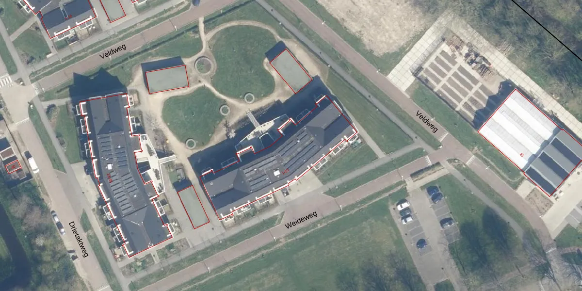 Het perceel waarop Weideweg 15 staat heeft een oppervlakte van 15,1 ha. Dit is een zeer groot perceel. De perceeloppervlakte wordt geregistreerd door het Kadaster. Gedetailleerde informatie over de maten van dit perceel kunt u vinden in het rapport Kadastrale kaart met maatvoering van Weideweg 15.