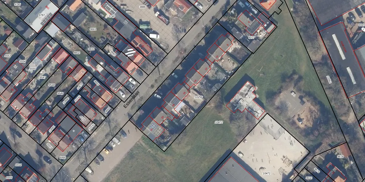 Het perceel waarop Essenlaan 16 staat heeft een oppervlakte van 1758 m². Dit is een zeer groot perceel. De perceeloppervlakte wordt geregistreerd door het Kadaster. Gedetailleerde informatie over de maten van dit perceel kunt u vinden in het rapport Kadastrale kaart met maatvoering van Essenlaan 16.