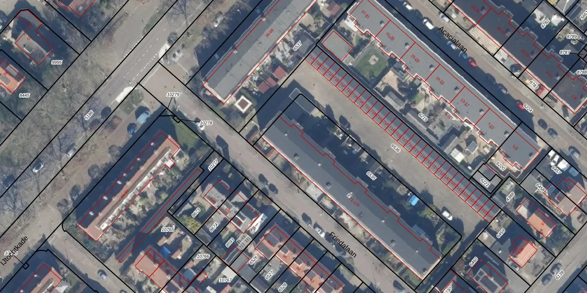 Friedalaan 121 is gelegen op kadastraal perceel HLM03A6535. Deze kadastrale aanduiding is uniek en wordt gebruikt door het Kadaster om eigendomsrechten en andere zakelijke rechten vast te leggen. Het perceel maakt onderdeel uit van de kadastrale gemeente Haarlemmermeer.