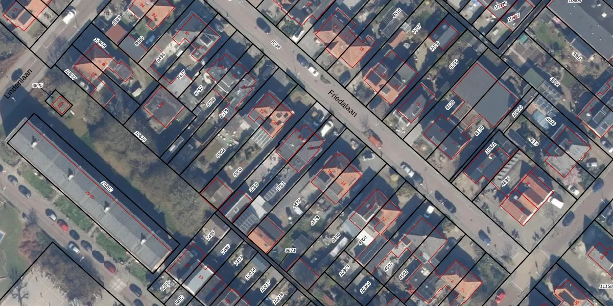 Het perceel waarop Friedalaan 18 staat heeft een oppervlakte van 319 m². Dit is een groot perceel. De perceeloppervlakte wordt geregistreerd door het Kadaster. Gedetailleerde informatie over de maten van dit perceel kunt u vinden in het rapport Kadastrale kaart met maatvoering van Friedalaan 18.