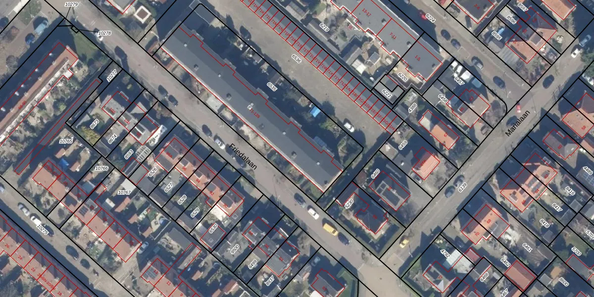 Het perceel waarop Friedalaan 85 staat heeft een oppervlakte van 1837 m². Dit is een zeer groot perceel. De perceeloppervlakte wordt geregistreerd door het Kadaster. Gedetailleerde informatie over de maten van dit perceel kunt u vinden in het rapport Kadastrale kaart met maatvoering van Friedalaan 85.
