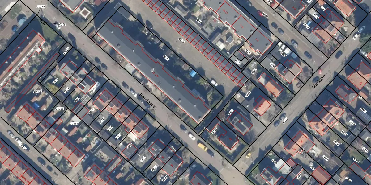Het perceel waarop Friedalaan 87 staat heeft een oppervlakte van 1837 m². Dit is een zeer groot perceel. De perceeloppervlakte wordt geregistreerd door het Kadaster. Gedetailleerde informatie over de maten van dit perceel kunt u vinden in het rapport Kadastrale kaart met maatvoering van Friedalaan 87.