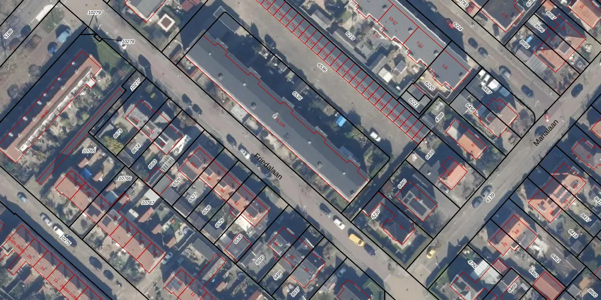 Het perceel waarop Friedalaan 89 staat heeft een oppervlakte van 1837 m². Dit is een zeer groot perceel. De perceeloppervlakte wordt geregistreerd door het Kadaster. Gedetailleerde informatie over de maten van dit perceel kunt u vinden in het rapport Kadastrale kaart met maatvoering van Friedalaan 89.