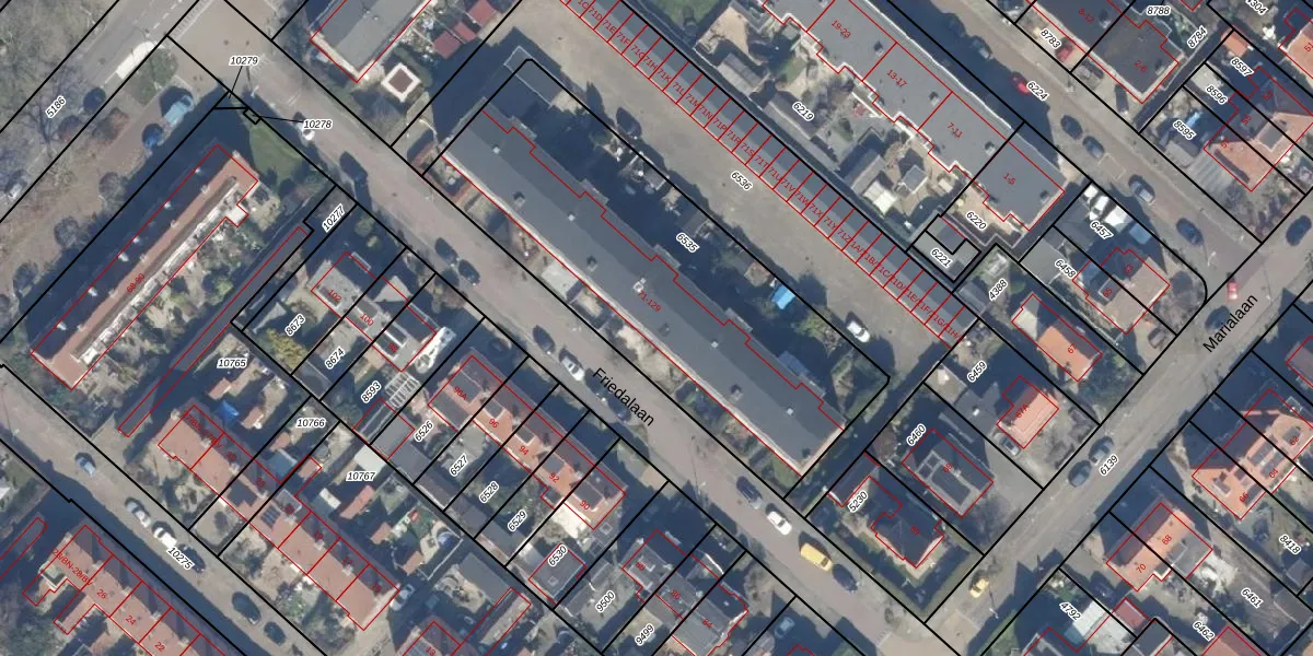 Het perceel waarop Friedalaan 95 staat heeft een oppervlakte van 1837 m². Dit is een zeer groot perceel. De perceeloppervlakte wordt geregistreerd door het Kadaster. Gedetailleerde informatie over de maten van dit perceel kunt u vinden in het rapport Kadastrale kaart met maatvoering van Friedalaan 95.