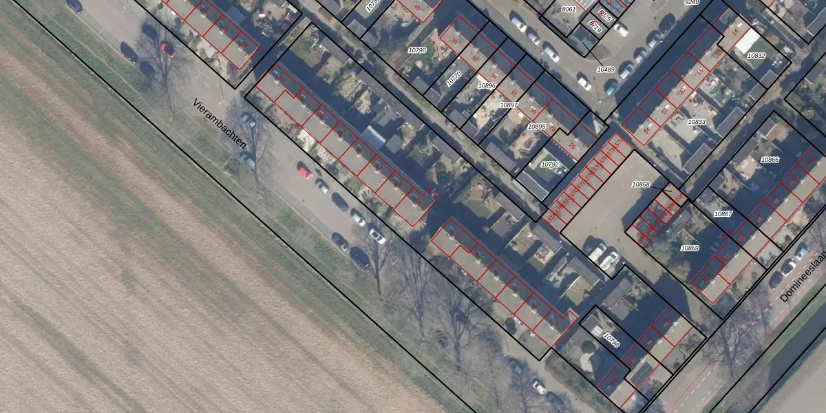 Het perceel waarop Vierambachten 13 staat heeft een oppervlakte van 3931 m². Dit is een zeer groot perceel. De perceeloppervlakte wordt geregistreerd door het Kadaster. Gedetailleerde informatie over de maten van dit perceel kunt u vinden in het rapport Kadastrale kaart met maatvoering van Vierambachten 13.
