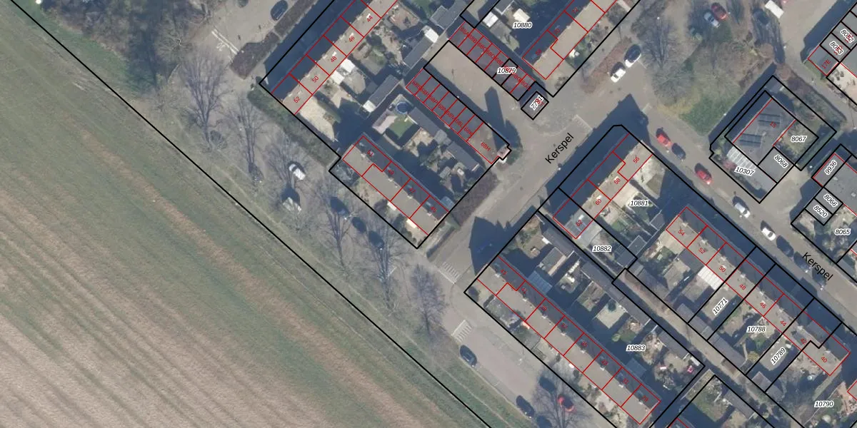 Het perceel waarop Vierambachten 45 staat heeft een oppervlakte van 7990 m². Dit is een zeer groot perceel. De perceeloppervlakte wordt geregistreerd door het Kadaster. Gedetailleerde informatie over de maten van dit perceel kunt u vinden in het rapport Kadastrale kaart met maatvoering van Vierambachten 45.