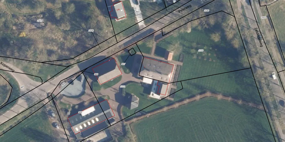 Het perceel waarop Peerweg 4 staat heeft een oppervlakte van 2745 m². Dit is een zeer groot perceel. De perceeloppervlakte wordt geregistreerd door het Kadaster. Gedetailleerde informatie over de maten van dit perceel kunt u vinden in het rapport Kadastrale kaart met maatvoering van Peerweg 4.