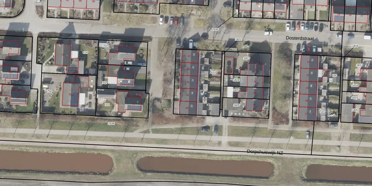 Het perceel waarop Dosterdstraat 43 staat heeft een oppervlakte van 880 m². Dit is een groot perceel. De perceeloppervlakte wordt geregistreerd door het Kadaster. Gedetailleerde informatie over de maten van dit perceel kunt u vinden in het rapport Kadastrale kaart met maatvoering van Dosterdstraat 43.