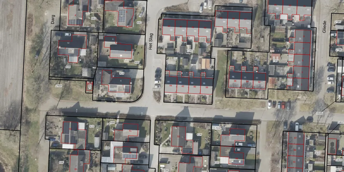 Het perceel waarop Dosterdstraat 44 staat heeft een oppervlakte van 2033 m². Dit is een zeer groot perceel. De perceeloppervlakte wordt geregistreerd door het Kadaster. Gedetailleerde informatie over de maten van dit perceel kunt u vinden in het rapport Kadastrale kaart met maatvoering van Dosterdstraat 44.